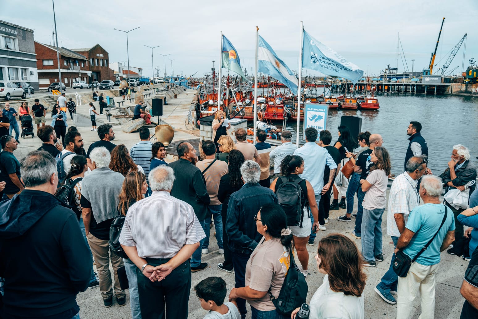 Marcos Gutierrez, presidente del Consorcio Portuario Regional, encabezó la ceremonia que se realizó con presencia de la senadora bonaerense Fernanda Raverta, funcionarios provinciales, concejales, referentes gremiales y de organizaciones de derechos humanos y trabajadores de distintas actividades vinculadas al puerto local.